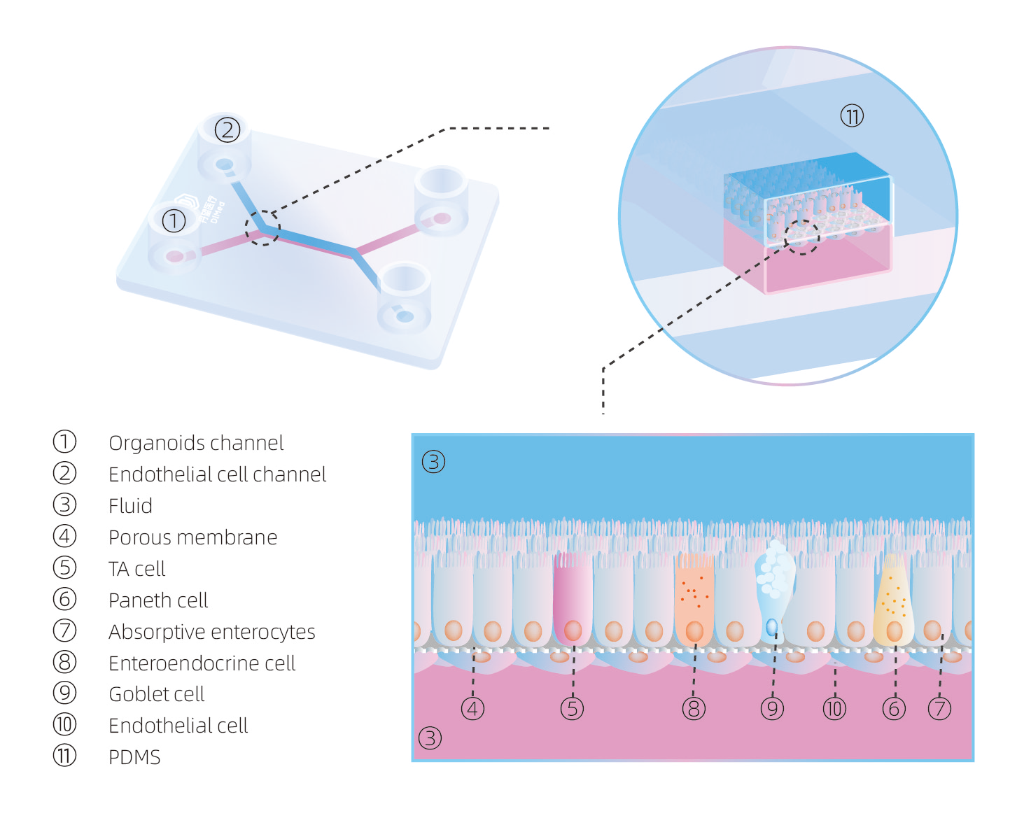 本产品可以模拟人体生理或病理状态,整合相关的多种微环境因素,如微生物、理化因素、流体剪切力等。