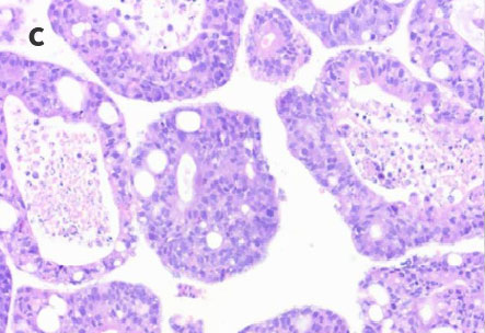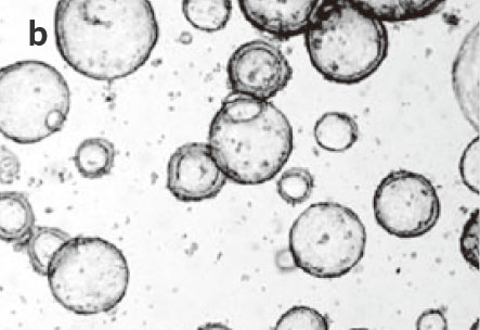 a.肠癌原发灶类器官明场; b.肠癌肝转移类器官明场; c.肠癌类器官HE染色