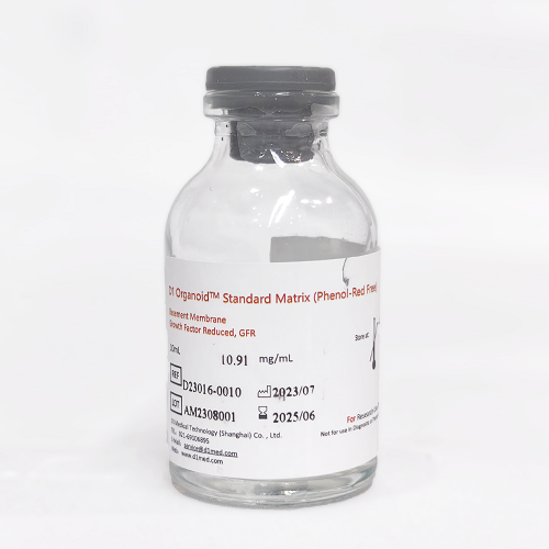 本品为减生长因子型无酚红基质胶,适用于需要避免颜色干扰,减少生长因子诱导的背景信号的,对基底膜制备要求较高的研究应用。