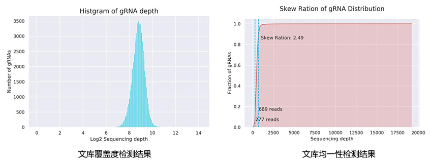 1.sgRNA质粒文库覆盖度可以达到99%以上,NGS测序进行覆盖度、均一性等的检测质控,测序深度300-500X,均一性小于8;